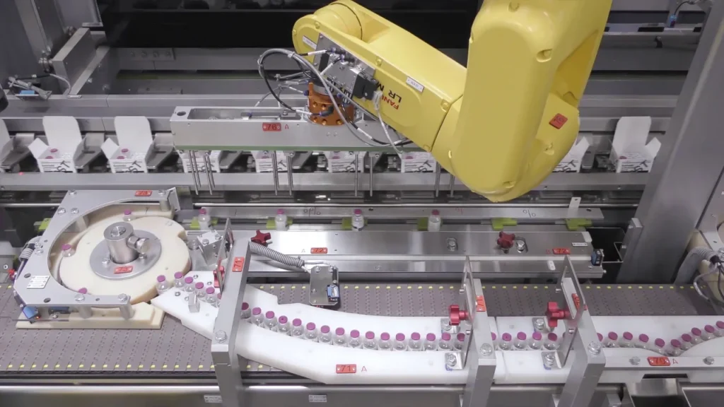 - Automated Packaging and Labeling Machines – Package medicines and apply labels efficiently under strict regulatory standards.